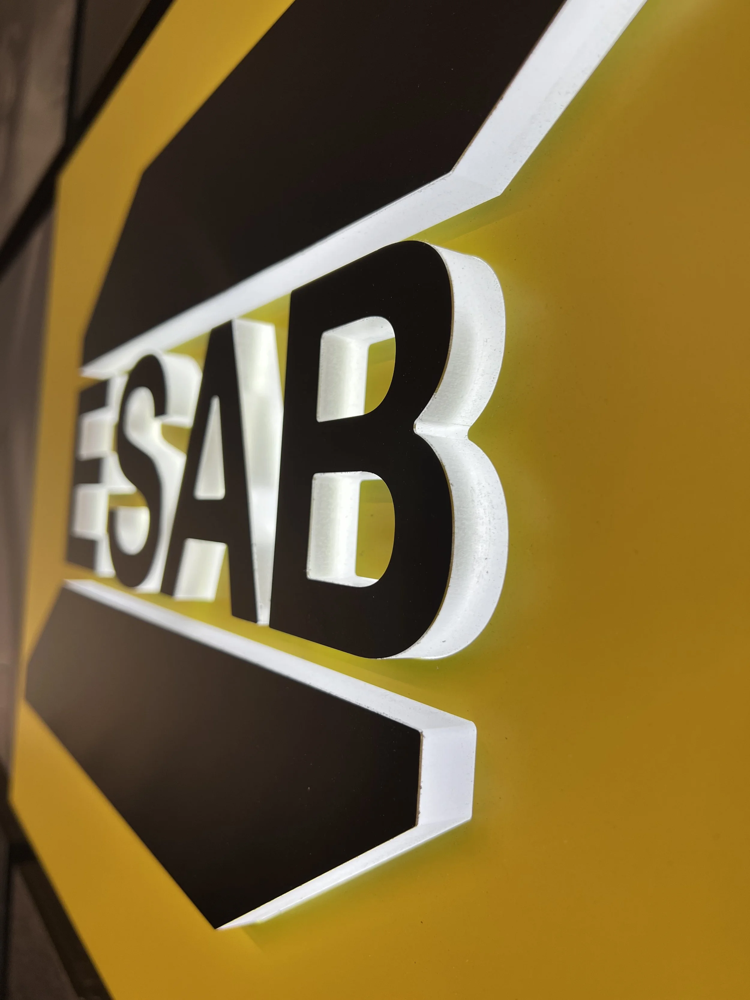 ESAB trusted DUO to brand their corporate office floor with texture, light, and impact, transforming a standard workspace into a dynamic, engaging environment. We combined illuminated signage, dimensional graphics, and natural elements like moss wall panels to create visual depth and warmth. Every design choice was intentional, reinforcing ESAB’s brand identity while making the space more inspiring for employees and visitors alike.